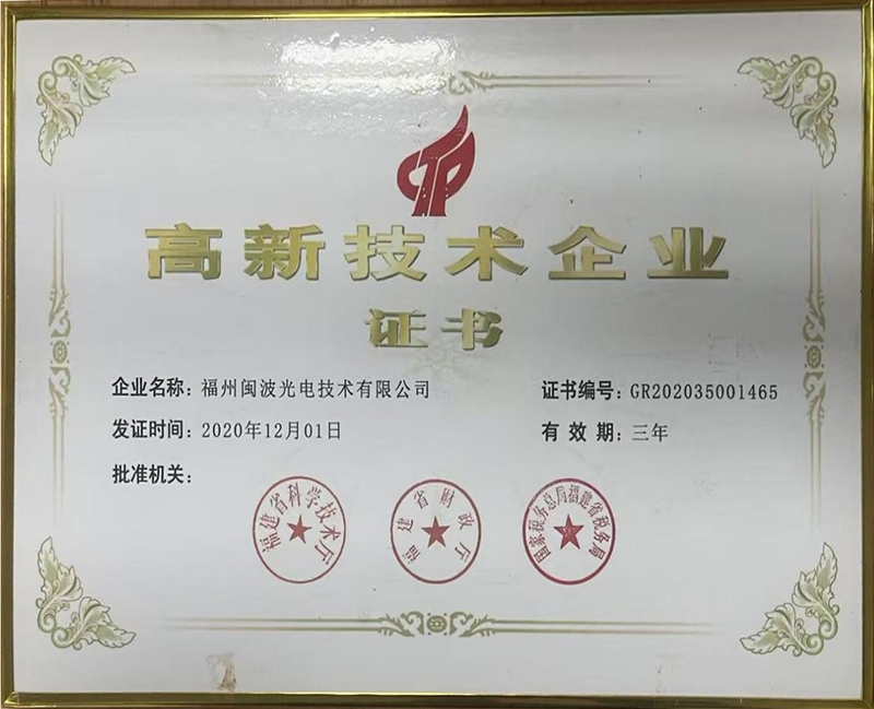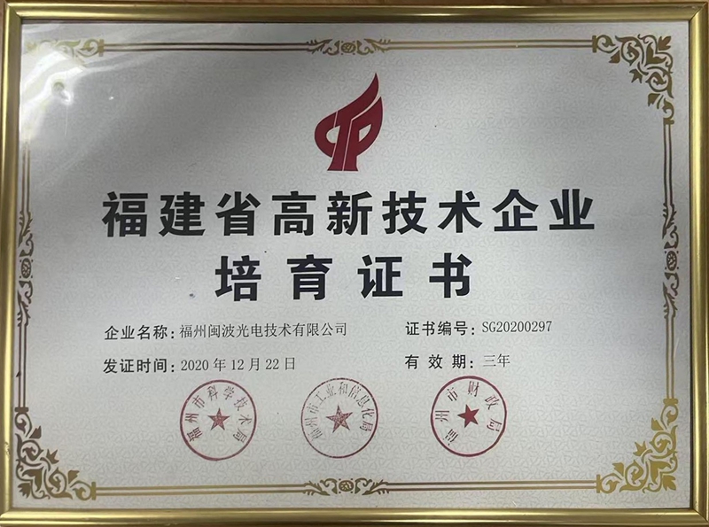 • 福建省高新技术企业培育证书