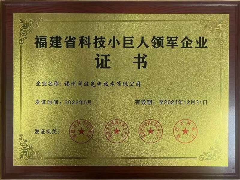• 福建省科技小巨人领军企业证书